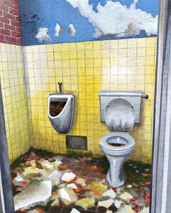 2021Normally I would not visit the mens room. But in Wünsdorf in an abanoned building, I came across this one, complete with urinals and even the pipework was still there.